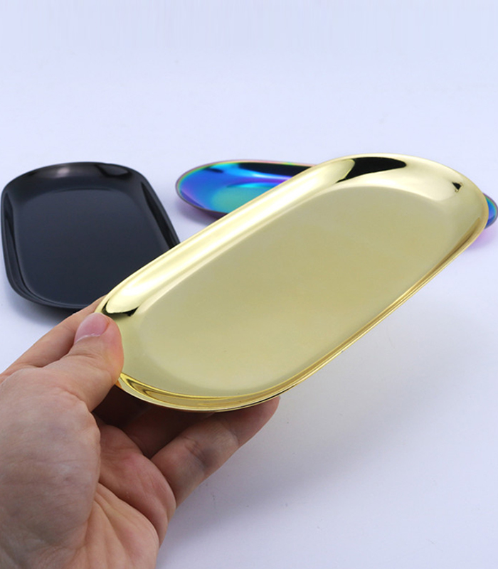 Decorative Metal Tray – 23 × 9 cm – Available in Black, Gold & Silver